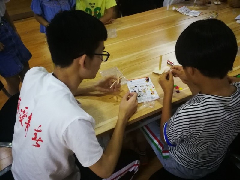 教室里满是欢声笑语,我们的活动也已经接近尾声,大家玩着自己组装好的作品,体验着自己动手的快乐。最后,我们一起和小朋友合影留念,这次活动就这样结束了。