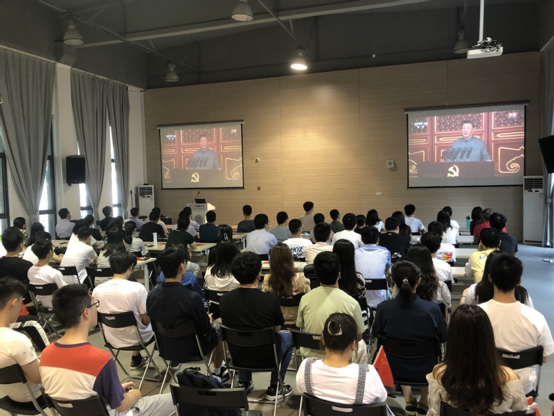奋斗百年路,启航新征程。7月1日,庆祝中国共产党成立100周年大会在天安门广场隆重举行。中共中央总书记、国家主席、中央军委主席习近平发表重要讲话。台湾a片 党委组织全体师生党员在新能源大楼121多功能厅集中收看了大会盛况,认真聆听、学习、领会习近平总书记重要讲话精神。