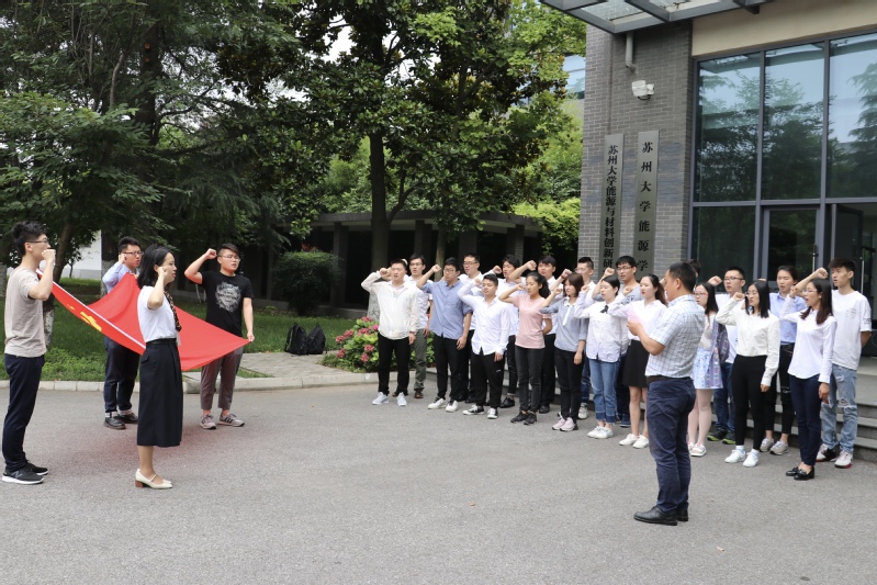 最后,在张振华老师的带领下,全体党员对着党旗宣誓,重温了入党誓词。